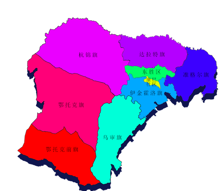 鄂尔多斯市位于内蒙古自治区西南部,西北东三面为黄河环绕,南临古长城,毗邻山西、陕西、内蒙古三省区。地势呈西北高东南低走向,北部黄河冲积平原区,东部丘陵沟壑区,中南部库布其沙漠、毛乌素沙区,西部坡状高原区。年均降雨量341毫米,蓝天比例高达61.6%,设国家级自然保护区2个。总面积8.68万平方千米,辖2个区、7个旗。2024年,全市常住人口224.05万人,其中,城镇人口180.14万人,乡村人口43.91万人;常住人口城镇化率80.40%,人口自然增长率2.47‰。域内居住生活着蒙古族、汉族、满族、回族等42个民族。2024年,全市完成地区生产总值6363亿元,扣除价格因素影响,同比增长6.4%。第一产业增加值217.4亿元,同比增长5.3%;第二产业增加值4458.4亿元,同比增长7.0%;第三产业增加值1687.3亿元,同比增长5.5%。人均地区生产总值285338元,同比增长5.5%。