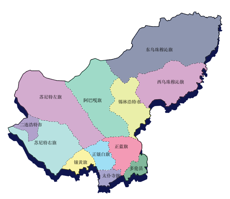 锡盟位于内蒙古自治区中部,北纬42°32′~46°41′,东经111°59′~120°00′。北与蒙古国接壤,边境线长1103公里;西与乌兰察布市交界;南与河北省毗邻;东与赤峰市、通辽市、兴安盟相连。距北京直线距离460公里。 锡盟行政区划面积20.26万平方公里,辖2个市、9个旗、1个县、1个管理区。全盟有32个苏木、3个乡、36个镇、8个街道办事处,161个社区居委会,其中,城市社区121个、农村牧区40个,577个嘎查委员会、278个村民委员会。13个旗县市(区)分别是:锡林浩特市、二连浩特市、苏尼特左旗、苏尼特右旗、阿巴嘎旗、东乌珠穆沁旗、西乌珠穆沁旗、镶黄旗、正镶白旗、太仆寺旗、正蓝旗、多伦县、乌拉盖管理区。1个经济技术开发区,锡林郭勒经济技术开发区。锡林浩特市是中共锡盟委、锡盟行政公署所在地,是锡盟政治、经济、文化中心。二连浩特市是中国通往蒙古国、俄罗斯和东欧各国的大陆桥,是内蒙古自治区计划单列市。珠恩嘎达布其口岸是中国面向蒙古国常年开放的重要陆路口岸。2024年,全盟地区生产总值1236.0亿元,按可比价计算,同比增长4.6%。其中,第一产业增加值179.4亿元,同比增长5.7%;第二产业增加值588.9亿元,同比增长5.4%;第三产业增加值467.6亿元,同比增长3.5%。
