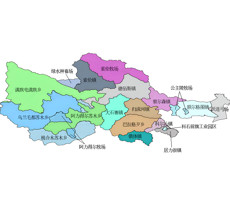 科尔沁右翼前旗(以下简称“科右前旗”)位于内蒙古自治区东北部,大兴安岭南麓,兴安盟中西部。总面积16985.3平方千米。旗境东与兴安盟扎赉特旗相连,南与吉林省洮南市、兴安盟乌兰浩特市、突泉县、科尔沁右翼中旗相接,西与锡林郭勒盟东乌珠穆沁旗、蒙古国毗邻,北与兴安盟阿尔山市、扎赉特旗接壤。中蒙边界线长32.50千米。旗辖3个苏木,满族屯满族乡和巴日嘎斯台2个乡,科尔沁、额尔格图、察尔森、归流河、大石寨、德伯斯、索伦、居力很、俄体9个镇,绿水种畜繁育中心??朴仪捌煺さ乜贫哒颉?023年,地区生产总值1348732.0万元,按可比价计算,同比增长5.7%。其中,第一产业767635.0万元,同比增长4.6%;第二产业210332.0万元,同比增长14.7%;第三产业370765.0万元,同比增长3.2%。